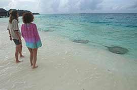The weather was disappointing; our trip was just a bit early and we were told the overcast skies and wind would soon disappear as the peak season brought golden, glassy stillness. But in truth it didn't matter. At least it was hot, and our ocean bungalow was a superb retreat in which to read, watch DVDs and snooze the hours away. The sheer glamour of the whole resort – from the twinkling lights in the main pool to the superb food - was enchanting and relaxing, whilst the staff were exceptionally warm and friendly. We had a double massage surveyed by tropical fish (part of the spa is underwater) and watched a marine biologist feed sting rays, which came flapping into shore inches from our feet, and naturally Robin found a myriad little Nemos with the help of his snorkel kit. It's terrible for a writer to reach for clichés, but – yes – the word 'paradise' does spring to mind. Isn't that what most of us crave?